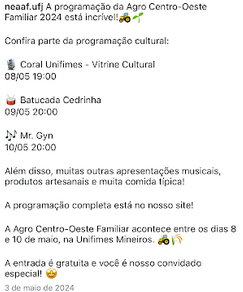 | Agro Centro-Oeste Familiar 2024 - Programação | 55 Kb | 0d6eb4ea7356a0835961d3736a622afa |